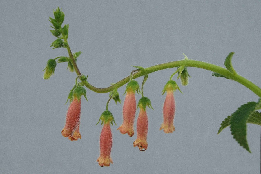 | Barva květu: | trubkovité ,chlupaté, červené, vysící kolmo dolů na zahnuté stopce. | ||||||