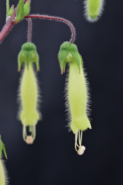 | Barva květu: | trubkovité ,chlupaté, žluté vysící kolmo dolů na zahnuté stopce. | ||||||